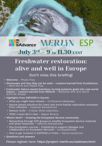Freshwater restoration: alive and well in Europe - Don’t miss this briefing!EcoAdvance, MERLIN and ESP, Freshwater restoration: alive and well in Europe3rd to 9th July, 11.30 CEST Don’t miss this briefing!